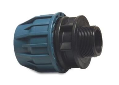 Jason Aansluitstuk PP 16mm x ½' knel x buitendraad 16bar zwart/blauw DVGW/KIWA/WRAS Code: AC02'